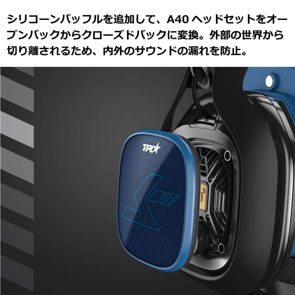 クローズド バックスピーカータグ シリコーンバッフルを追加して、A40ヘッドセットをオープンバックからクローズドバックに変換。
